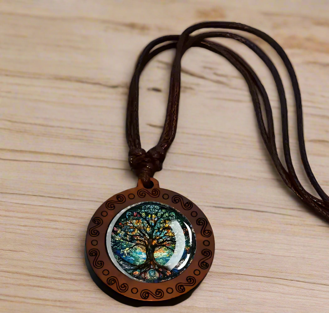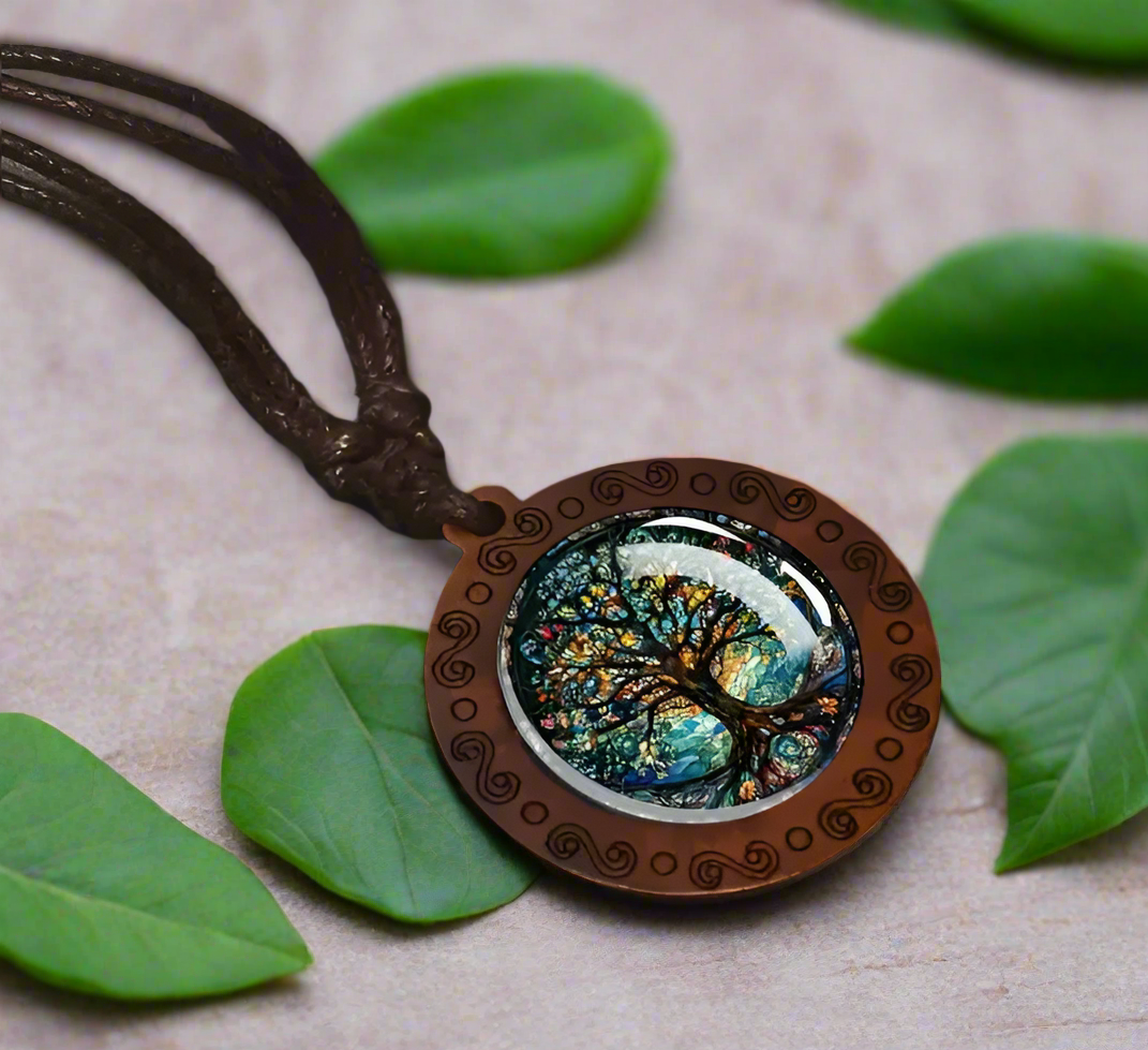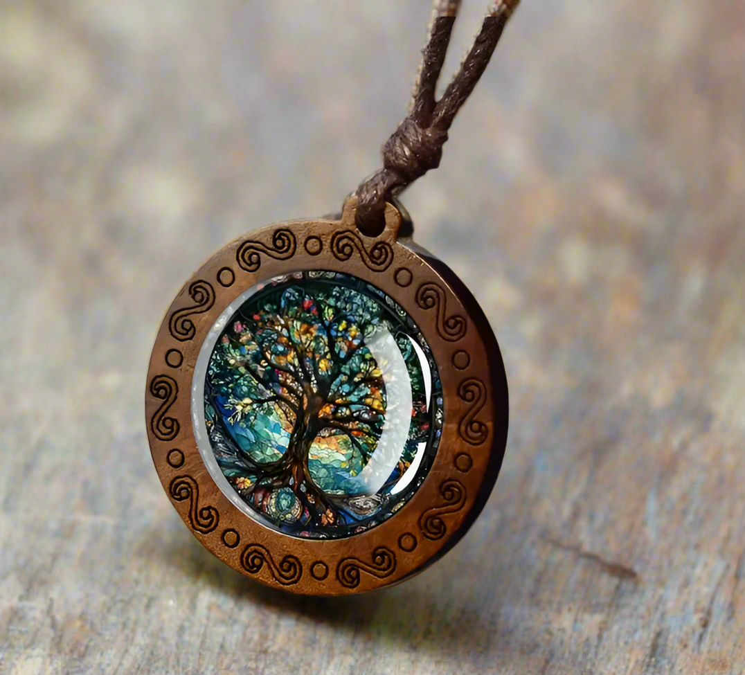 Tree of Life Rustic Pendant Necklace with Wooden Frame